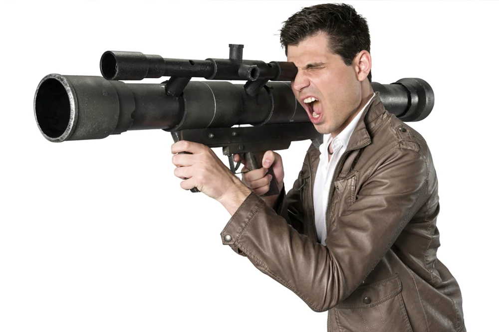 Die wenigsten wissen es, doch für eine Panzerfaust benötigt man aufgrund einer kuriosen Gesetzeslücke (fällt weder unter das Kriegswaffenkontrollgesetz noch wird sie explizit im Waffengesetz aufgeführt) tatsächlich keinen Waffenschein. Das Abfeuern einer Bazooka ist damit nicht nur zur Selbstverteidigung völlig legal. Tipp: Nur im Freien verwenden.